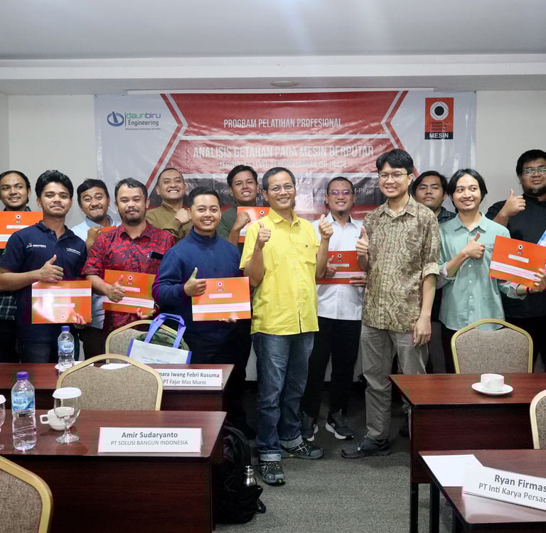 Pelatihan ini dirancang khusus untuk meningkatkan kompetensi para profesional dalam memahami fenomena getaran serta melakukan analisis kondisi peralatan berputar secara efektif yang sesuai dengan standar internasional ISO 18436