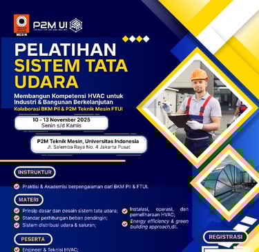 Dilaksanakan pada Tanggal : 10 - 13 November 2025 , di Gedung P2M - Dept. Teknik Mesin FTUI, Jl. Salemba Raya 4 Jakarta Pusat